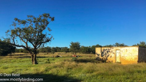 The day was waning as we approached the farm and our progress along the dirt road was punctuated by flocks of Queleas rising up out of the roadside grass at regular intervals, each flock numbering a couple of thousand at a guess. Piet remarked that he had seen many more flocks of larger size that same morning, so we were on the lookout for more Queleas, without realising what we would experience a bit later.