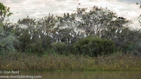 Massed Egrets, Spoonbills and Cormorants made for a spectacular sight on the river