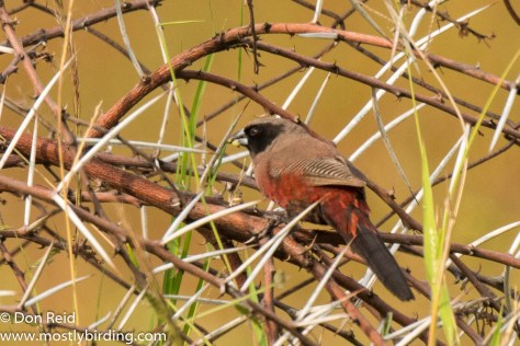 Friemersheim area north of Klein Brak – Olive Bushshrike, Swee Waxbill, Narina Trogon, Black-winged Lapwing
