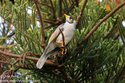 Like the Laughing Kookaburra, the Noisy Miner is found mostly in the eastern parts of Australia and, like so many species of this vast country, it is an endemic. The first thing that strikes you about this bird is its somewhat cross-eyed appearance – mainly due to the yellow coloured bare patch of skin behind the eyes
