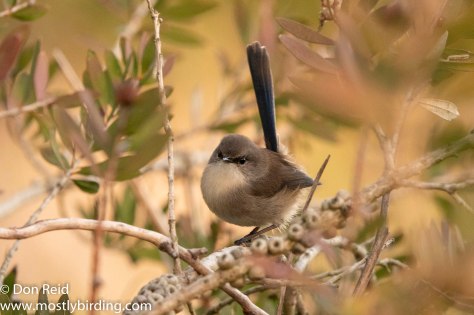 Now I know what you’re thinking …. what’s so “superb” about this attractive but dull-looking bird? The answer is in two parts – the female lacks the bright colouring of the male, while the male, brightly coloured in the breeding season, loses the bright colouring in non-breeding plumage, other than its tail which remains blue.
