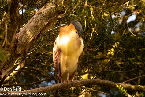 Not the best photo, but this is s a bird that chooses to perch on the very top of tall trees, and with the sky often being overcast yet bright it presents a real challenge to get a reasonable image. Without any exposure adjustment the image is likely to be so dark as to be unrecognisable.