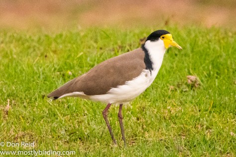 As Lapwings go, this is a particularly handsome one, often seen on larger lawns and in fields, feeding in its slow, deliberate fashion across most of Australia. This species used to be called the Spurwinged Plover as, like many lapwings, the wings are armed with spurs at the carpal joint that are used to defend their territory in breeding season.