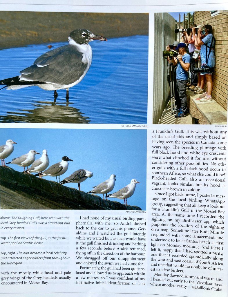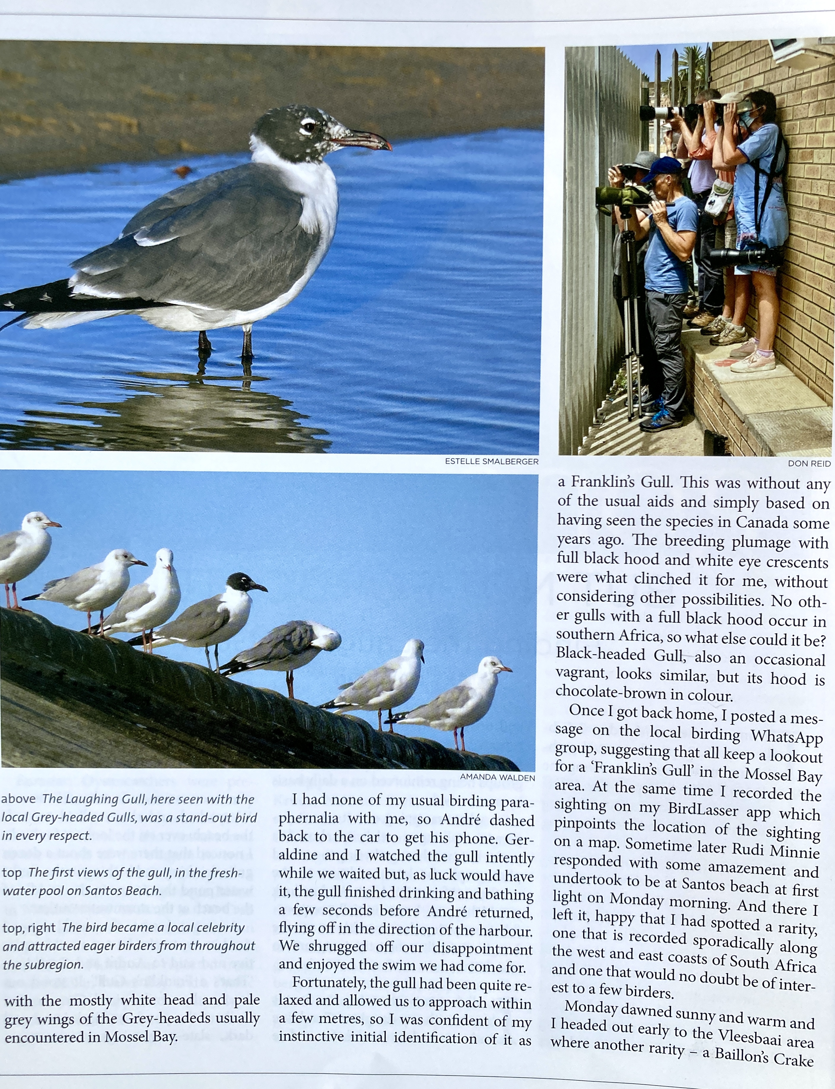 The gull became a celebrity visitor overnight and by far the most photographed bird in SA that week as several hundred birders descended on the town over the 6 days it remained there.