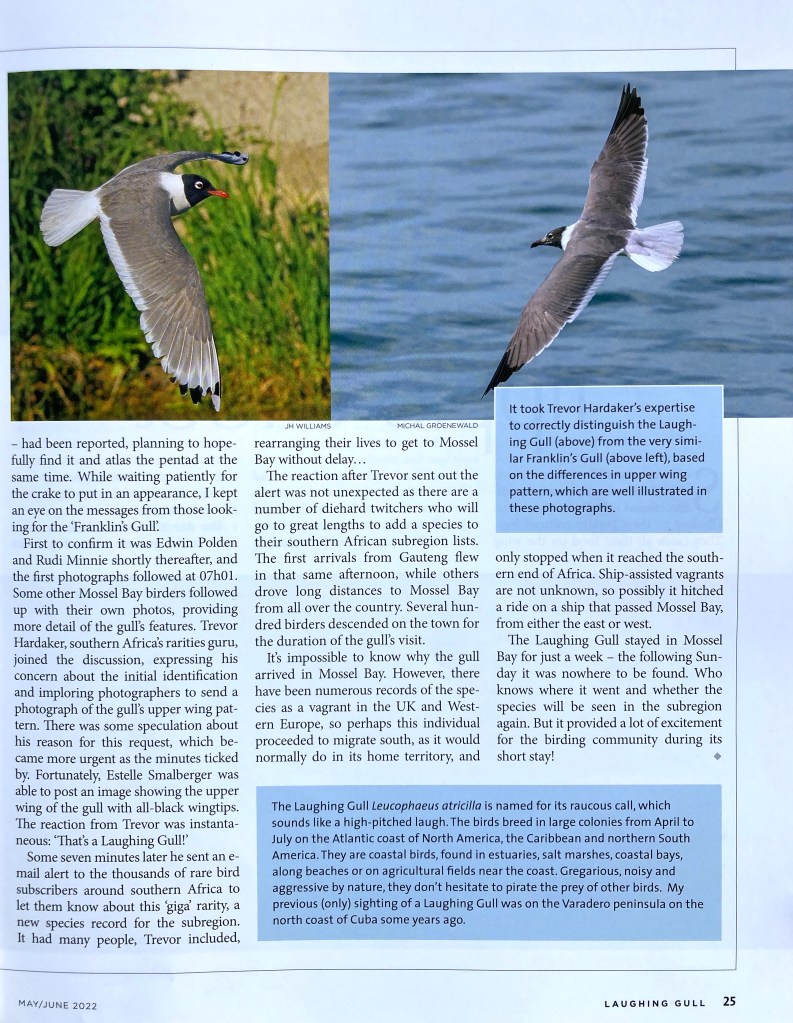 I’m pleased to say that my post, with some tweaks, has been recently published as an article in the May/June 2022 edition of African Birdlife magazine, reproduced below –