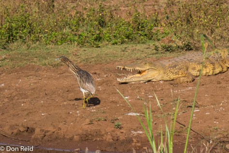 • Moving cautiously past a crocodile near the water, eyeing it in the process, while we all held our breath wondering if this would be the Pond-Heron’s last hurrah