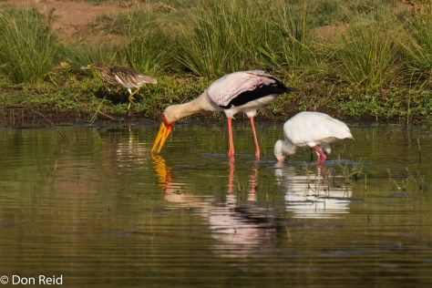 • Joining a Yellow-billed Stork and African Spoonbill foraging in the shallows