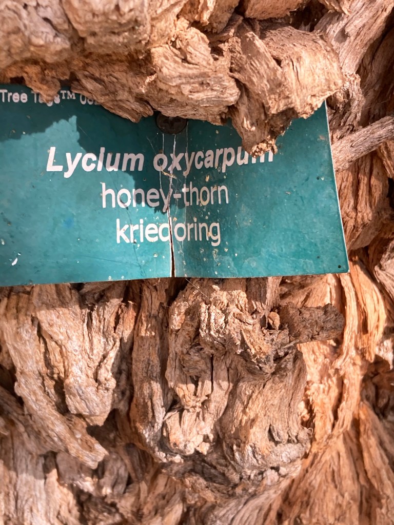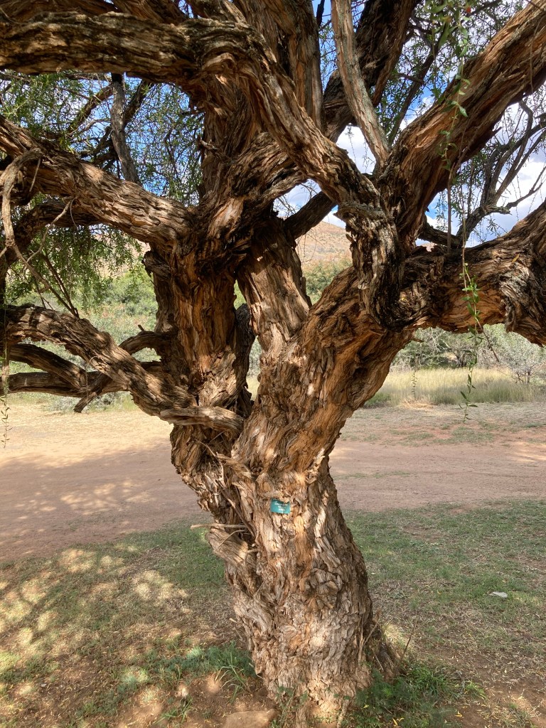 During our visit to Mountain Zebra National Park in March this year, we stopped at the main picnic area on the way to one of our drives and were drawn to have a closer look at the striking tree in the middle of the area.