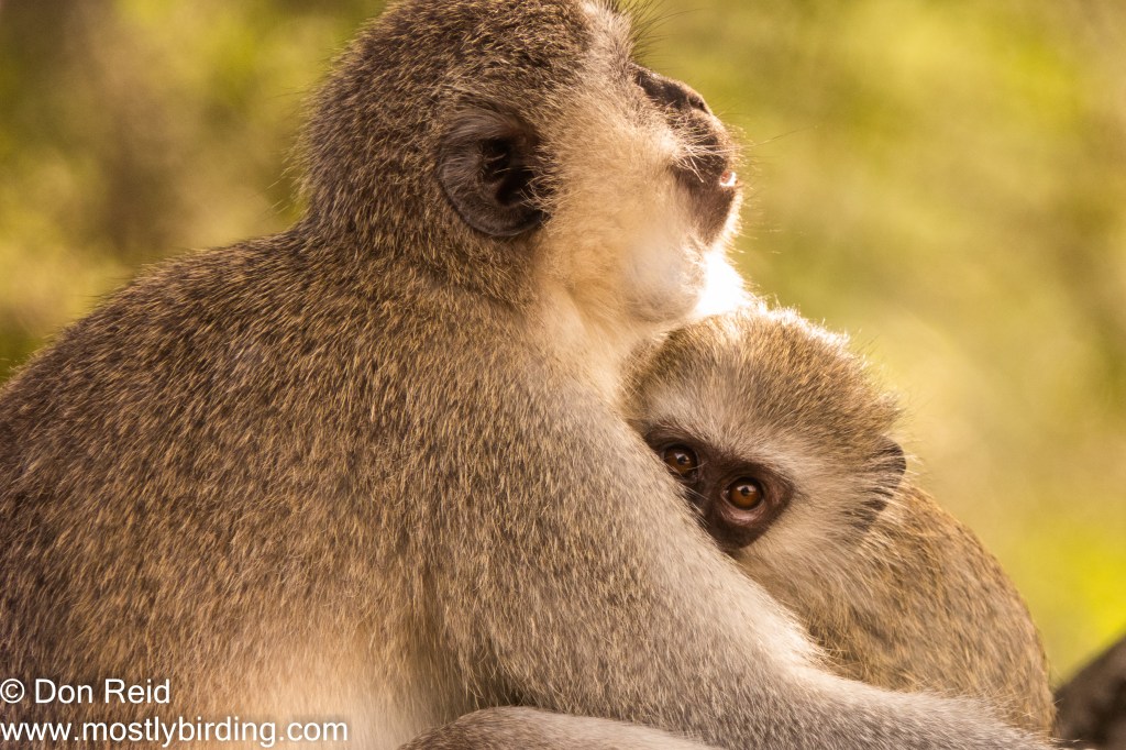 A short way further on we came across a group of Vervet Monkeys including a mother and youngster who posed like pros in the lovely shaded light – I am always drawn to their eyes which look so bright and intelligent.