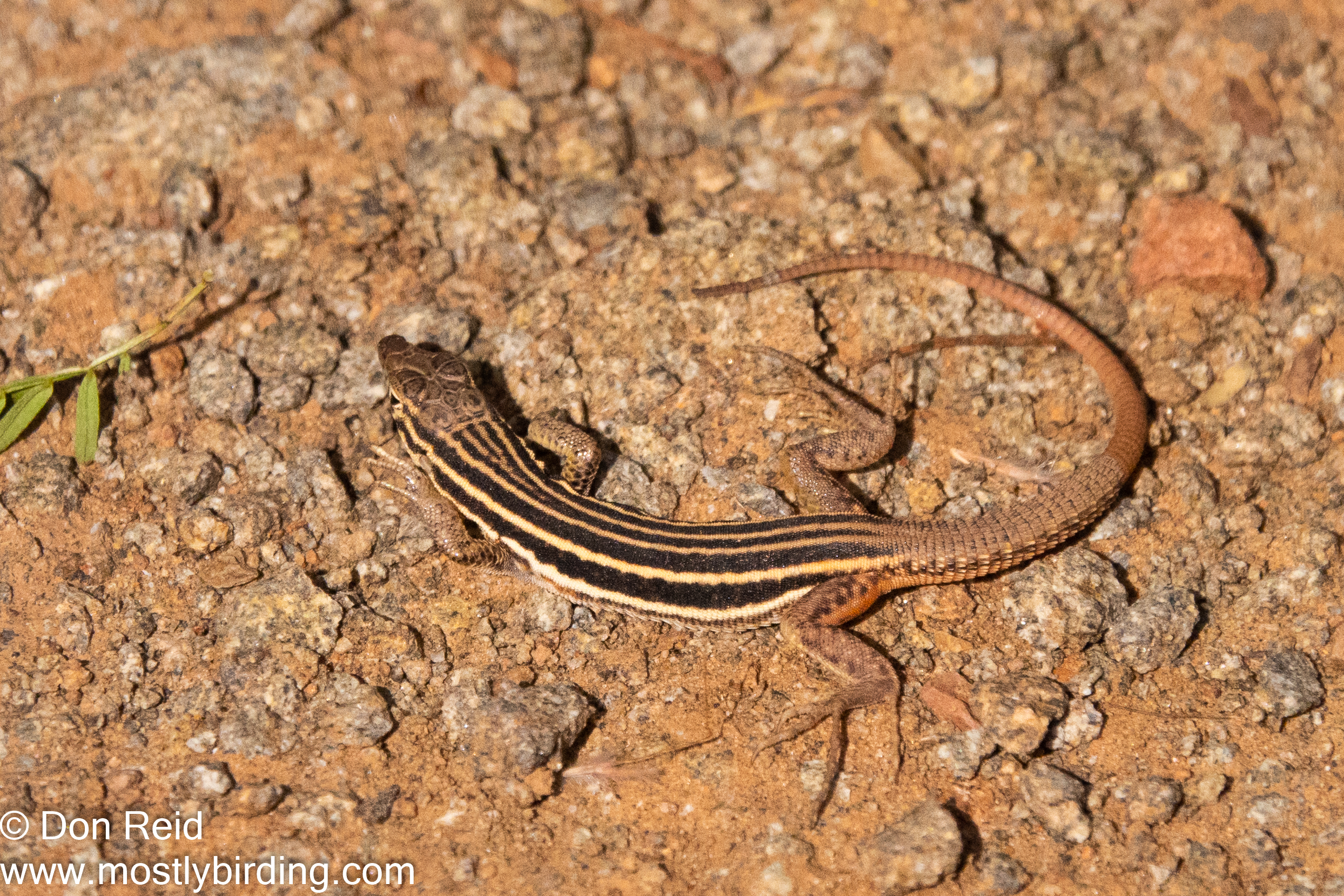 Another striped creature, this time a lizard, put in an appearance alongside the mice, each not taking much notice of the other, probably after small insects that wouldn’t necessarily be on the mice’s menu. With its distinctive stripes, I thought this would be an easy species to identify but the Reptile book I have groups lizards into a few main groups without providing photos of each regional one so I was only able to narrow it down to what I thought was a Mountain Lizard