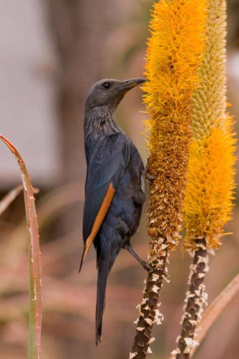 Red-winged Starling, Olifants (in case some sharp individual queries this, the photo was taken on another trip at the time of year when the Aloes are in flower)