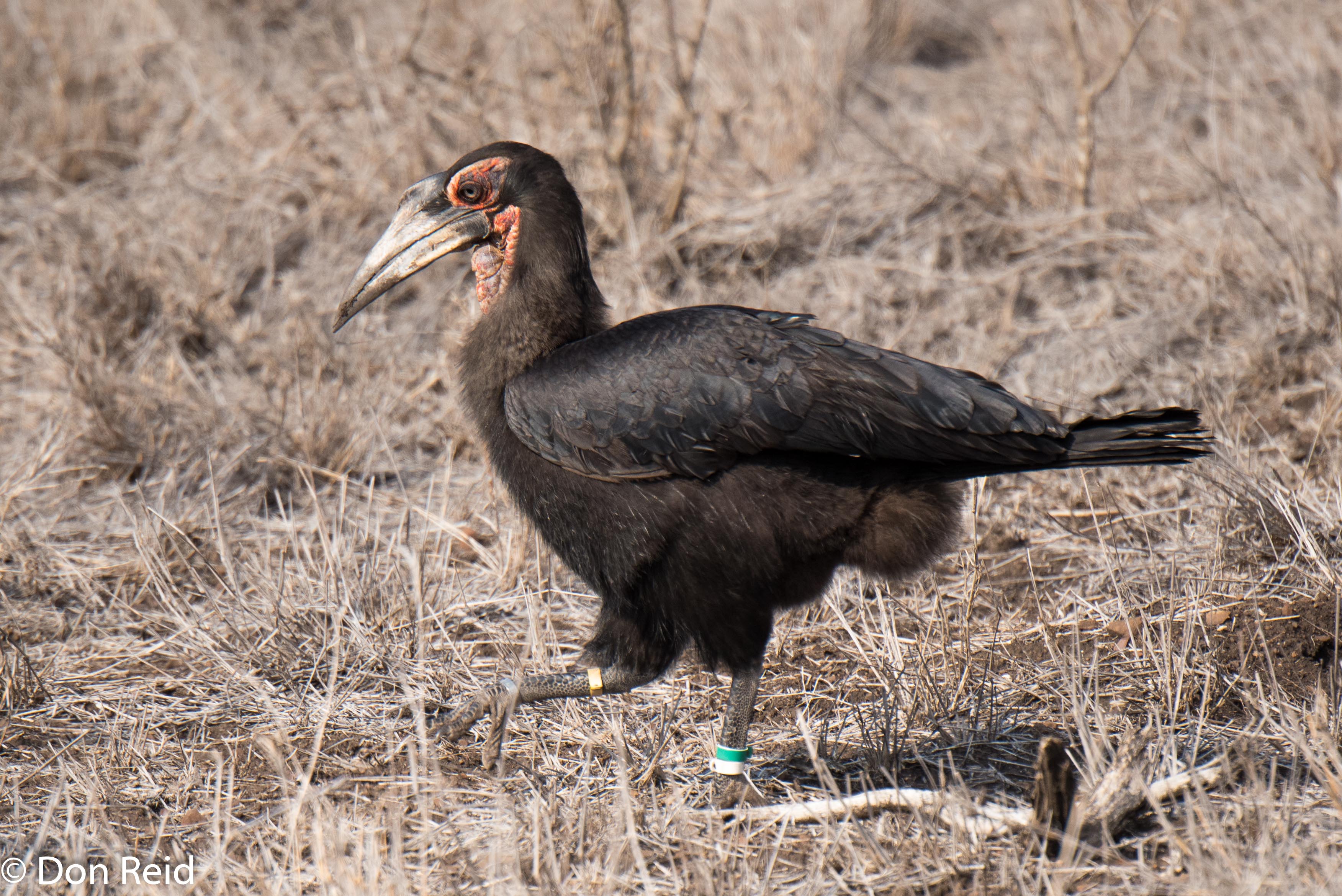 Juvenile Southern Ground Hornbill, ringed for ID by a research group
