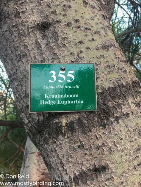 Just before 4 pm we arrived at Berg en Dal, which we last visited several years ago and we were soon settled in No 73, enjoying tea with the sounds of Purple-crested Turaco (Bloukuifloerie), Grey-headed Bushshrike (Spookvoël) and Black-headed Oriole (Swartkopwieliewaal), each with its own very distinctive call, in the background.