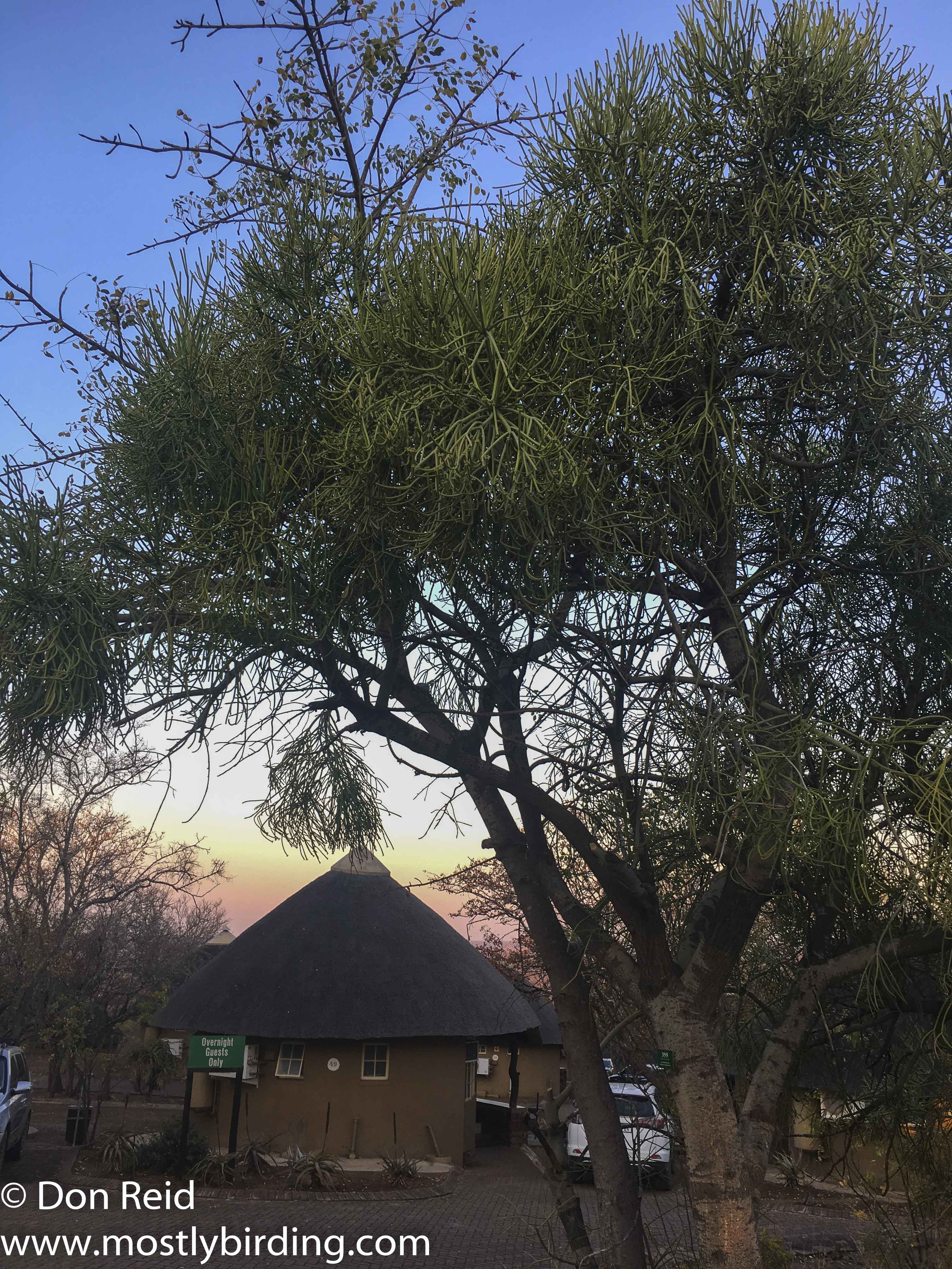 One of the great pleasures of birding in Kruger National Park is that you don’t necessarily have to go on a game drive to find a variety of birds. Birding the camp on foot is often a very productive way of building up a list of bird sightings and, if you are fortunate, you may be allocated a rondavel or chalet with surrounds that bring the birds to you.