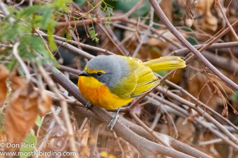 I was up early for a walk through Berg en Dal camp in welcome soft rain, adding several species on call alone, including Grey Tit-Flycatcher (Waaierstertvlieëvanger), whose soft trilling call has become a familiar one to me, Orange-breasted Bushshrike (Oranjeborslaksman) whose call is known to many birders as “coffee, tea or me?”, Sombre Greenbul (Gewone willie), Green-backed Camaroptera (Groenrugkwêkwêvoël) and Black-backed Puffback (Sneeubal).