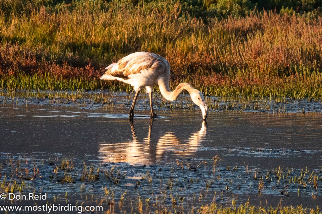 An added pleasure was seeing a large flock of Greater Flamingos on the far side of the water –
