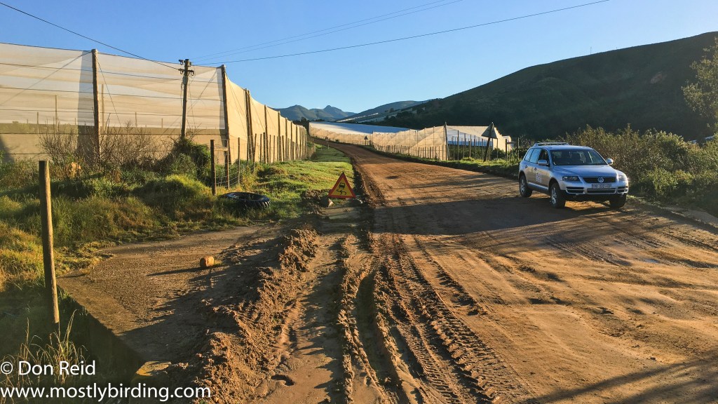 I started my pentad list along the road past Vleesbaai with a Black Harrier which I chased down the road to try and get level with it as it hunted low over the fields in true Harrier fashion, stopped quickly and rattled off a few shots – with limited success but lovely to see it in hunting mode.