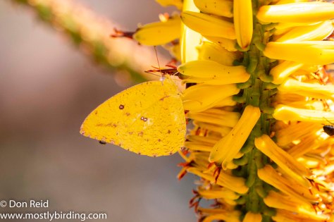 The adjoining aloes had attracted yellow butterflies and I set about capturing a few images of these colourful creatures as they fed on the aloe nectar.