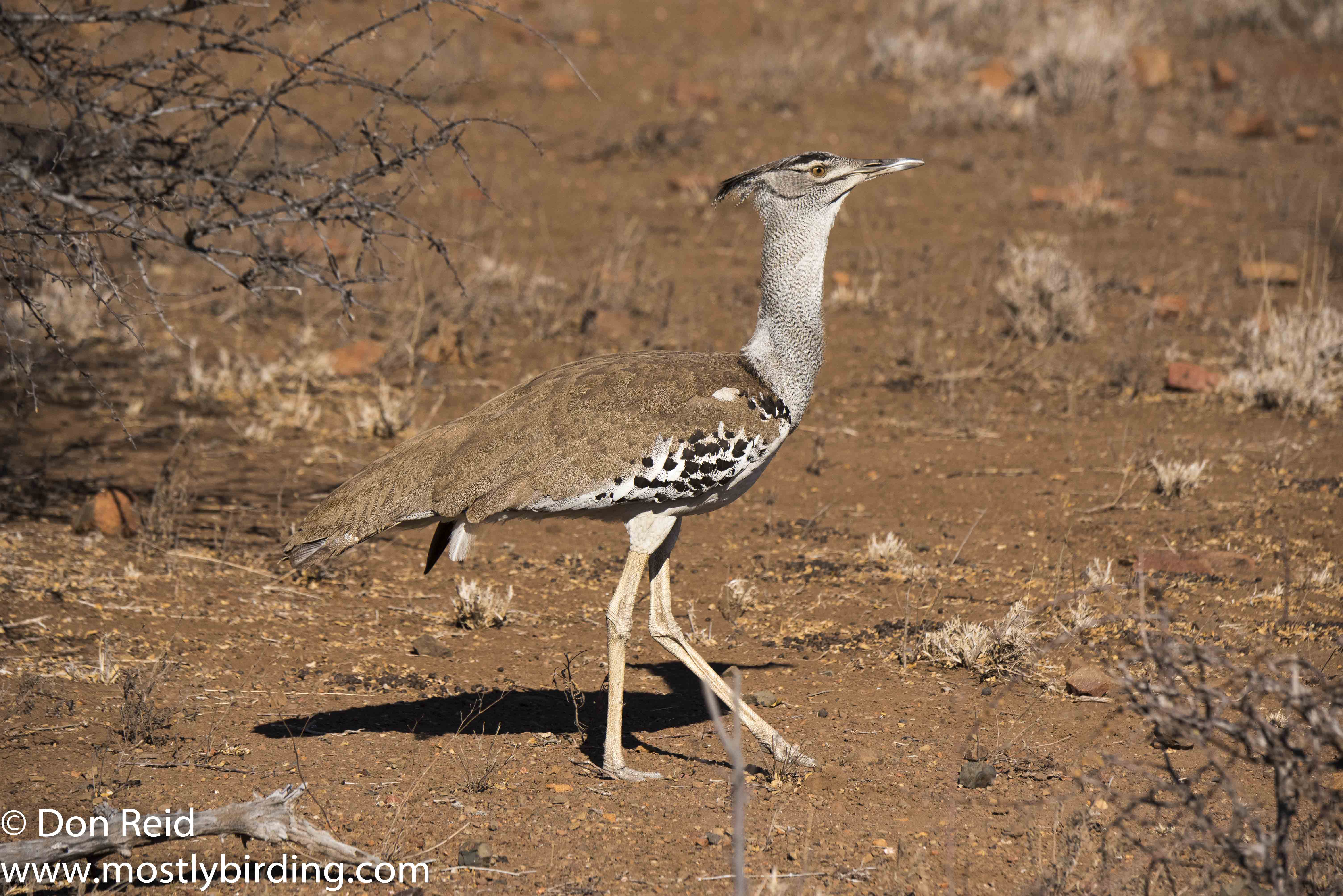 Best of all, we came across an elegant Kori Bustard right next to the road, strutting about rather imperiously with head held like an aristocrat viewing the rabble. Two cars passed by without stopping and with no idea that they had missed viewing one of the most impressive birds in South Africa – also the heaviest flying bird in the world – so limiting when all that matters is the “big cat” sightings