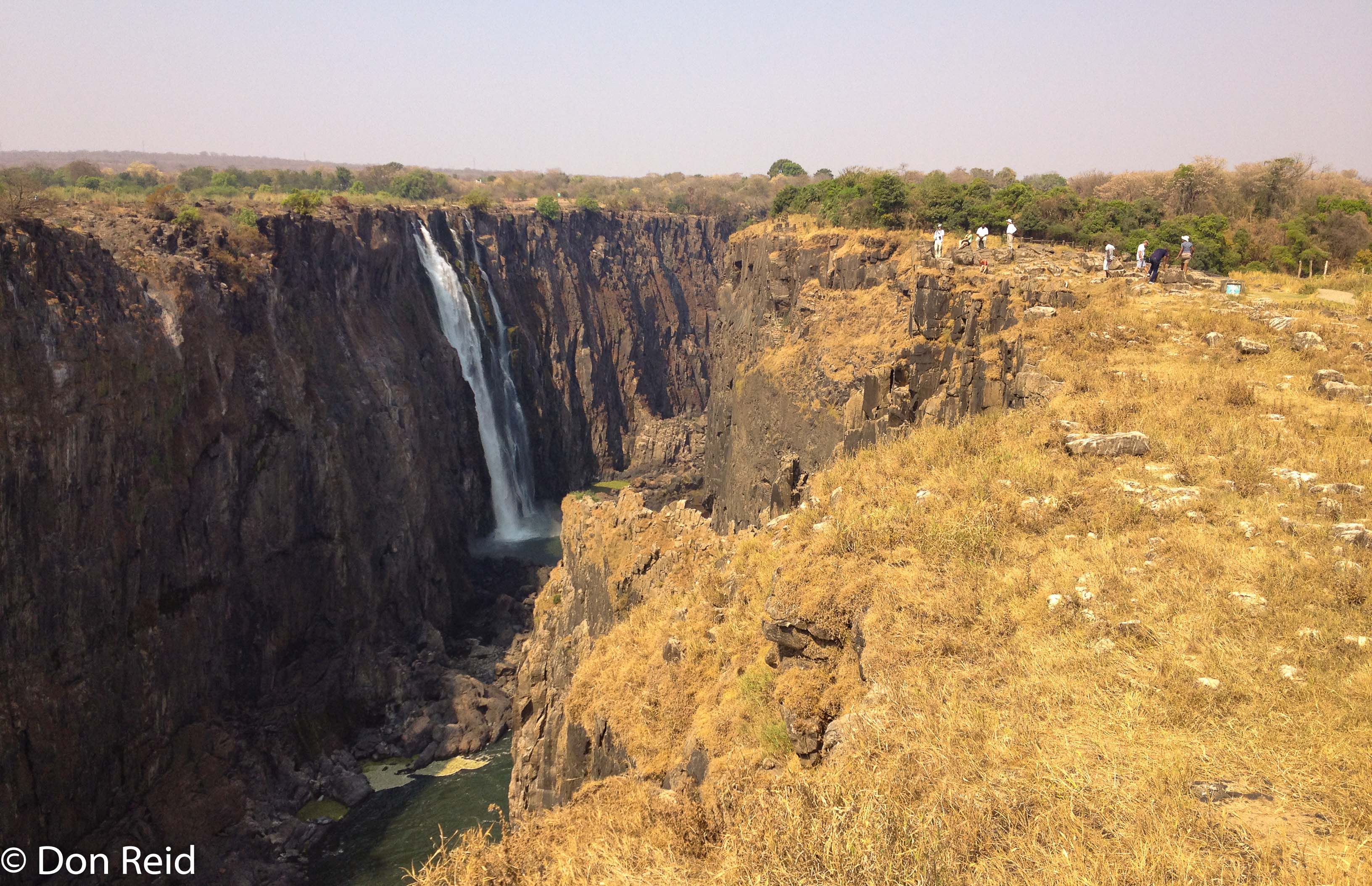 Some brave tourists (or foolish perhaps?) out for adventure on the Zambian side, were bathing in a pool on the edge of the falls – this can only be attempted in the low-water season for obvious reasons. This activity has claimed a few lives over the years.