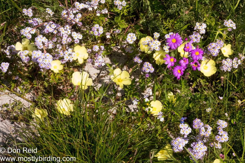 At one point on the return journey to the gate, the sky was filled with Gulls, wheeling above the flower-bedecked flats – quite a sight to see!